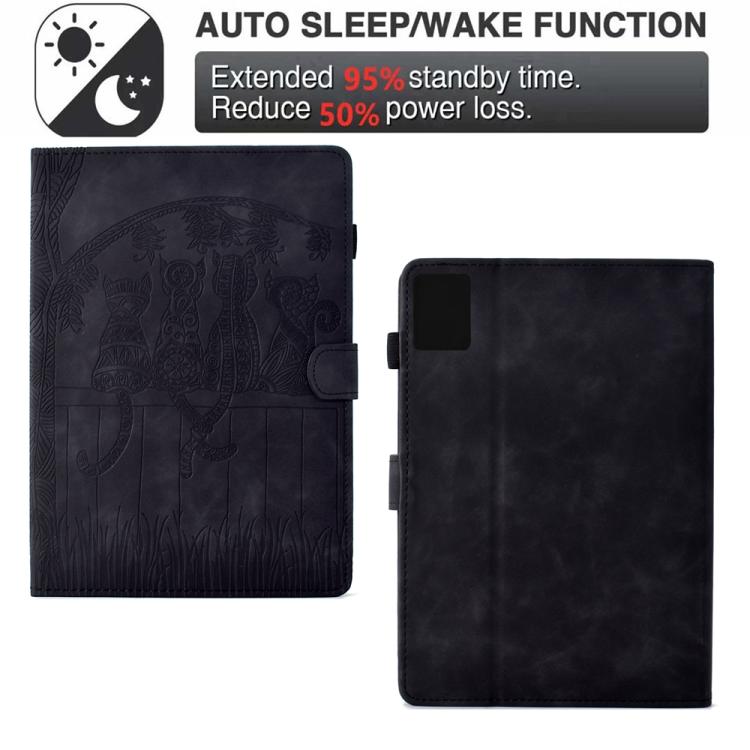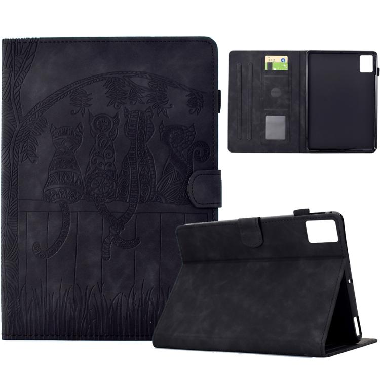 For Lenovo Xiaoxin Pad 12.1 2025 Cats Embossed Leather Smart Tablet Case(Black)