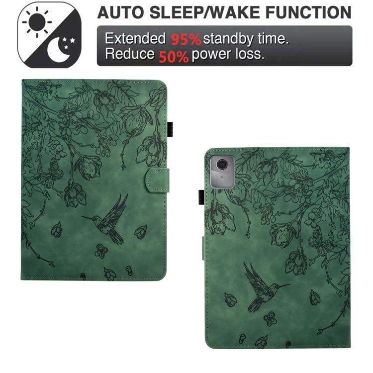 For Lenovo Xiaoxin Pad 12.1 2025 Flowers and Bird Embossed Smart Leather Tablet Case(Green)