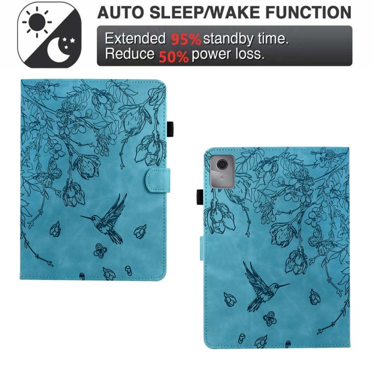 For Lenovo Xiaoxin Pad 12.1 2025 Flowers and Bird Embossed Smart Leather Tablet Case(Light Blue)