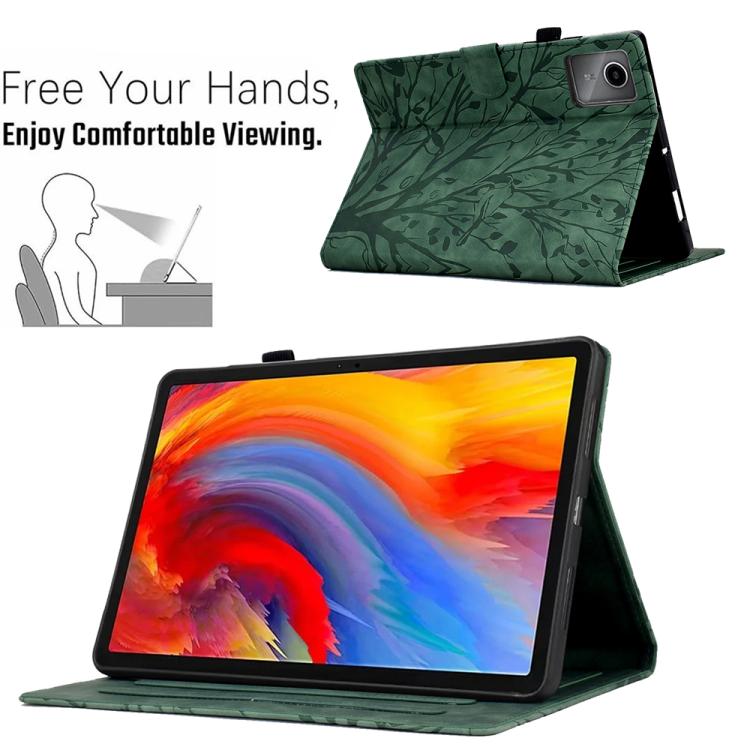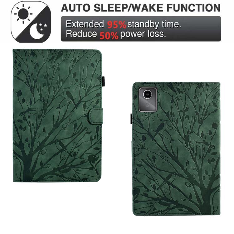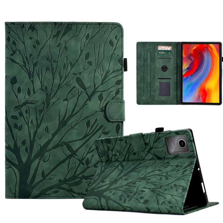 For Lenovo Xiaoxin Pad 12.1 2025 Fortune Tree Embossed Leather Smart Tablet Case(Green)