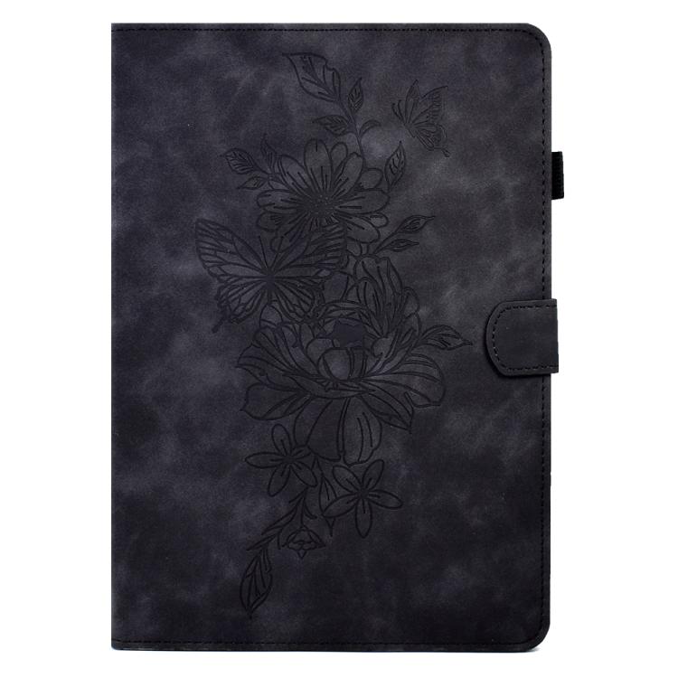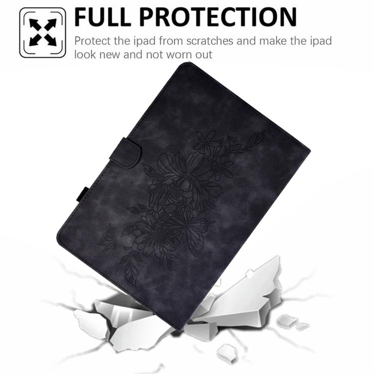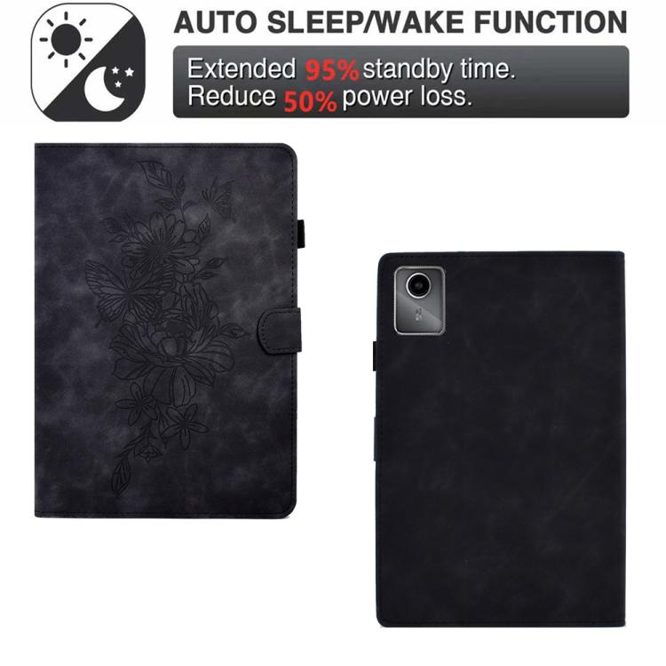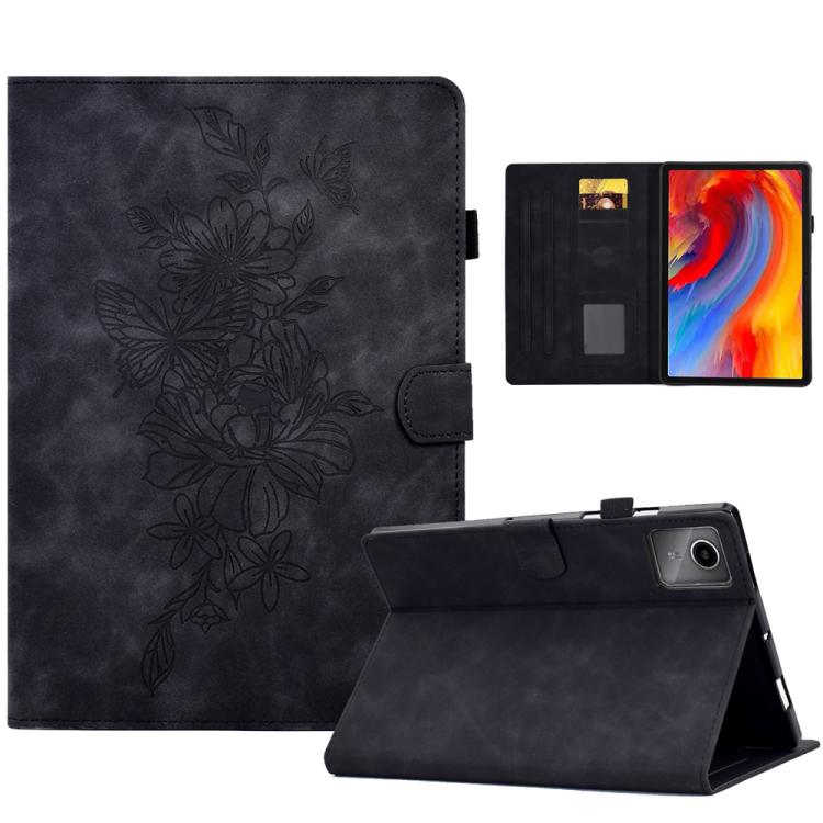 For Lenovo Xiaoxin Pad 12.1 2025 Peony Butterfly Embossed Leather Smart Tablet Case(Black)
