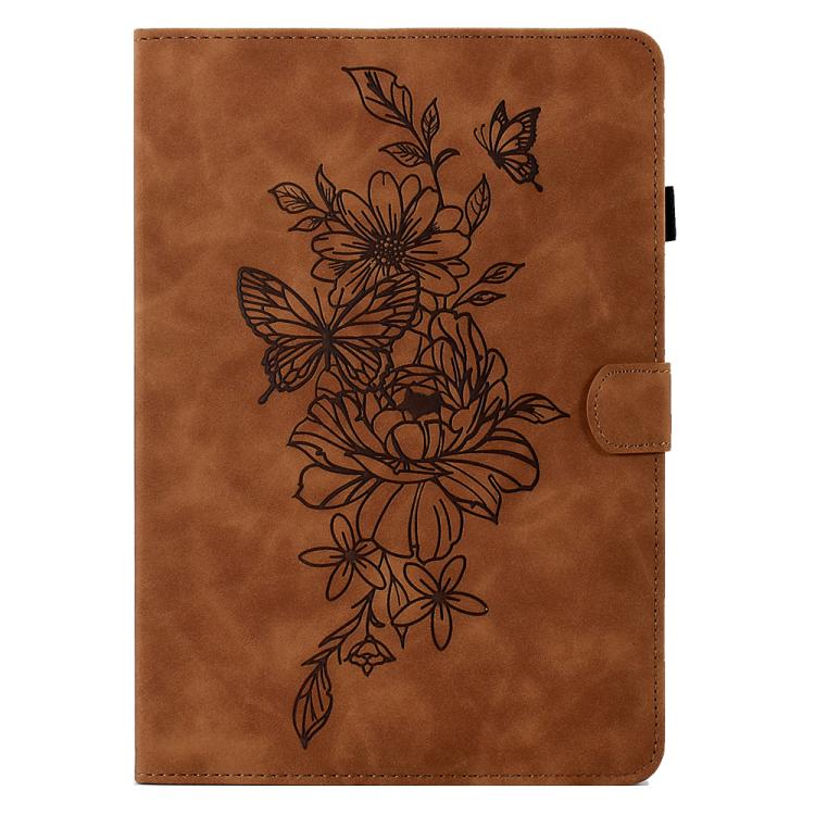 For Lenovo Xiaoxin Pad 12.1 2025 Peony Butterfly Embossed Leather Smart Tablet Case(Brown)