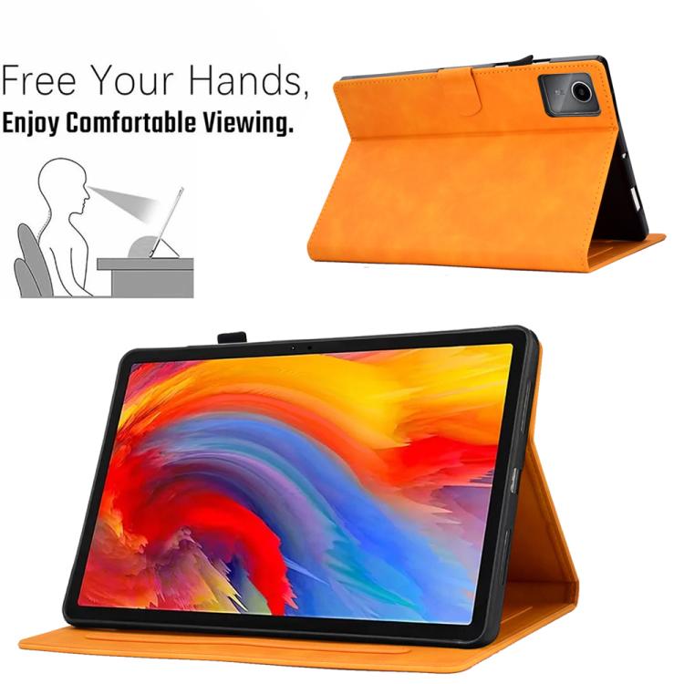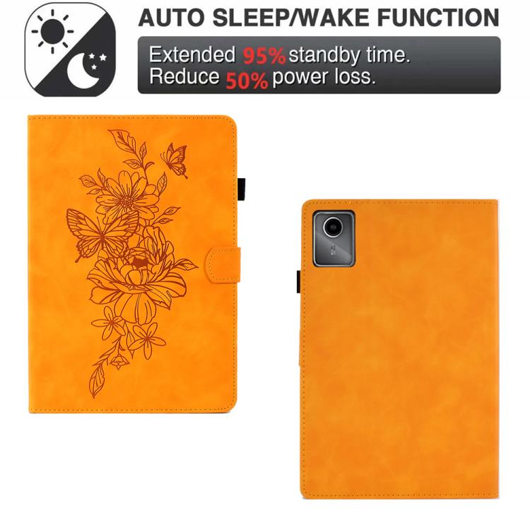 For Lenovo Xiaoxin Pad 12.1 2025 Peony Butterfly Embossed Leather Smart Tablet Case(Khaki)