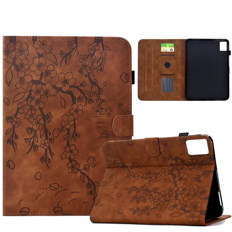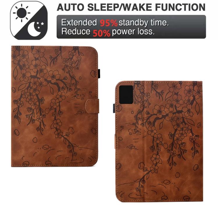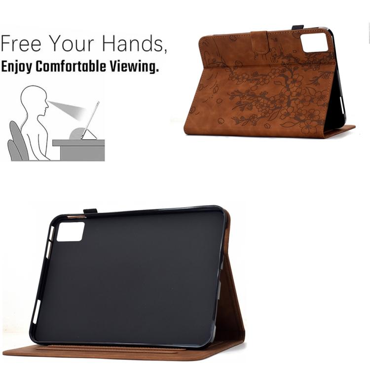 For Lenovo Xiaoxin Pad 12.1 2025 Plum Blossom Embossed Smart Leather Tablet Case(Brown)