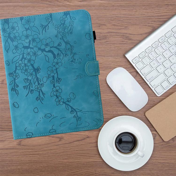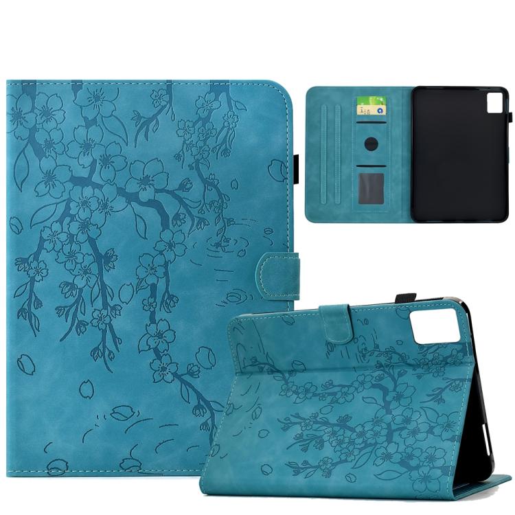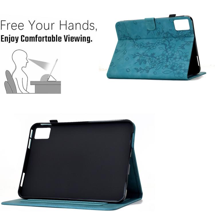 For Lenovo Xiaoxin Pad 12.1 2025 Plum Blossom Embossed Smart Leather Tablet Case(Light Blue)