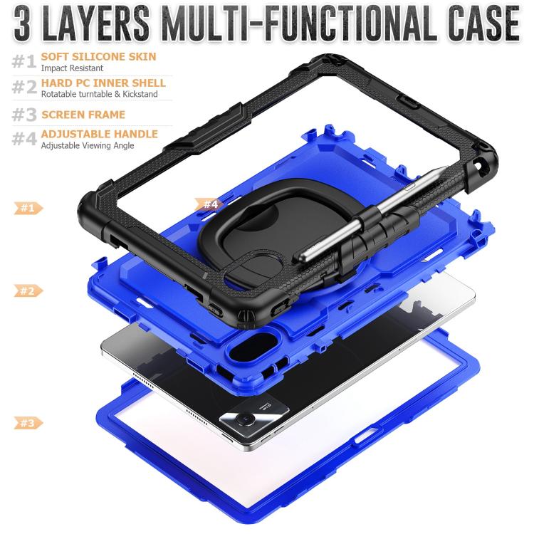 For Lenovo Xiaoxin Pad 2024 / 2025 Handle Silicone Hydric PC Tablet Case with Shoulder Strap(Blue PC)