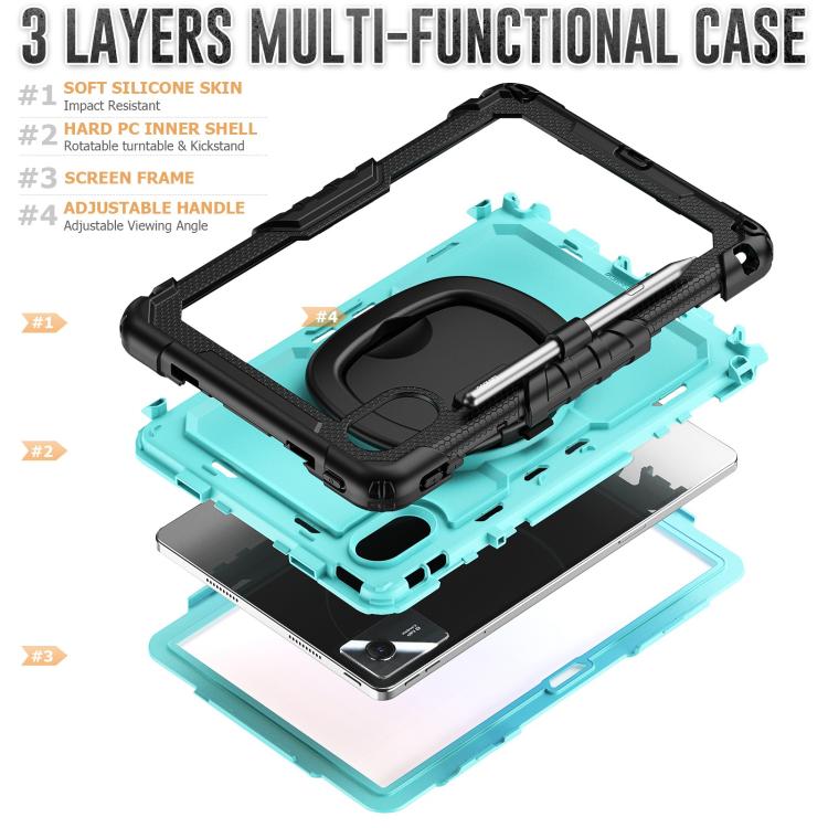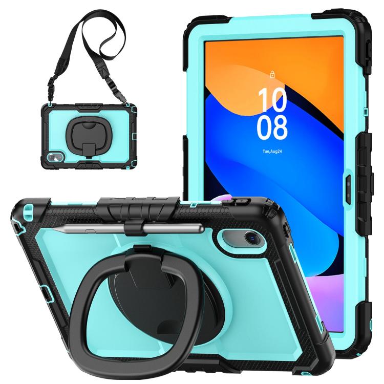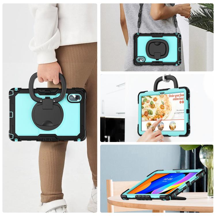 For Lenovo Xiaoxin Pad 2024 / 2025 Handle Silicone Hydric PC Tablet Case with Shoulder Strap(Light Blue PC)