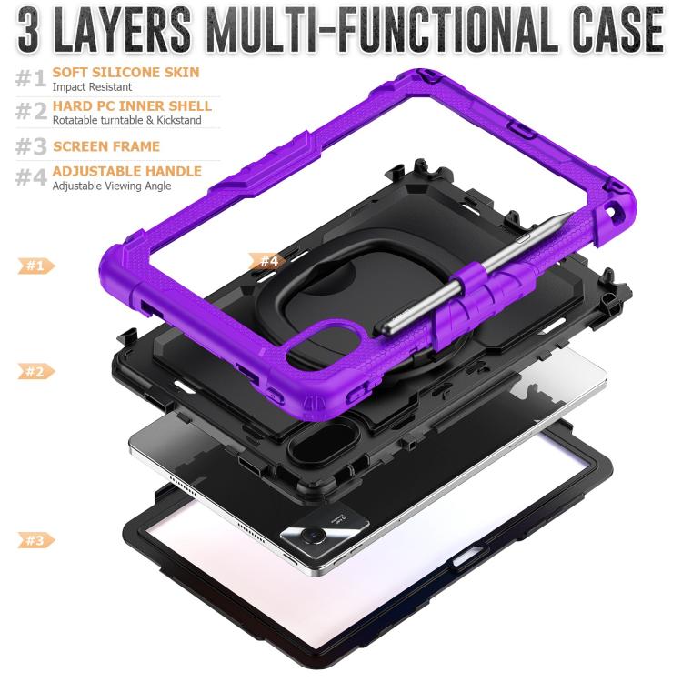 For Lenovo Xiaoxin Pad 2024 / 2025 Handle Silicone Hydric PC Tablet Case with Shoulder Strap(Purple)