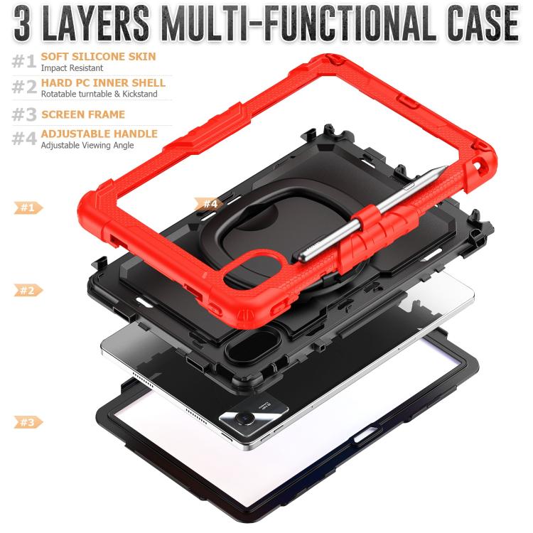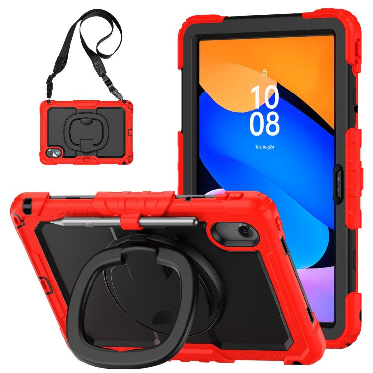 For Lenovo Xiaoxin Pad 2024 / 2025 Handle Silicone Hydric PC Tablet Case with Shoulder Strap(Red)