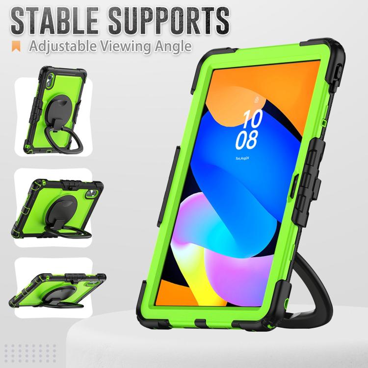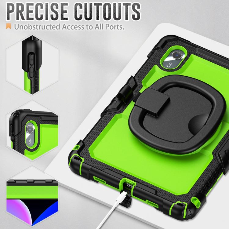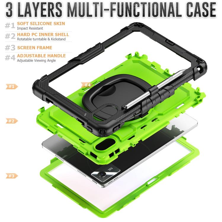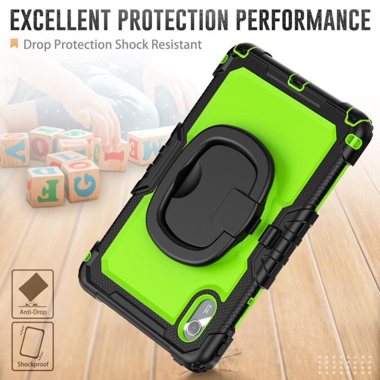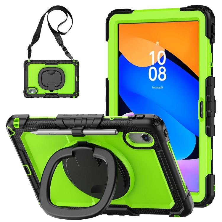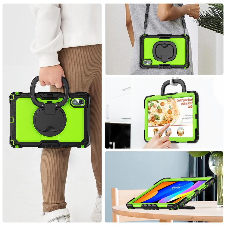 For Lenovo Xiaoxin Pad 2024 / 2025 Handle Silicone Hydric PC Tablet Case with Shoulder Strap(Yellow Green PC)