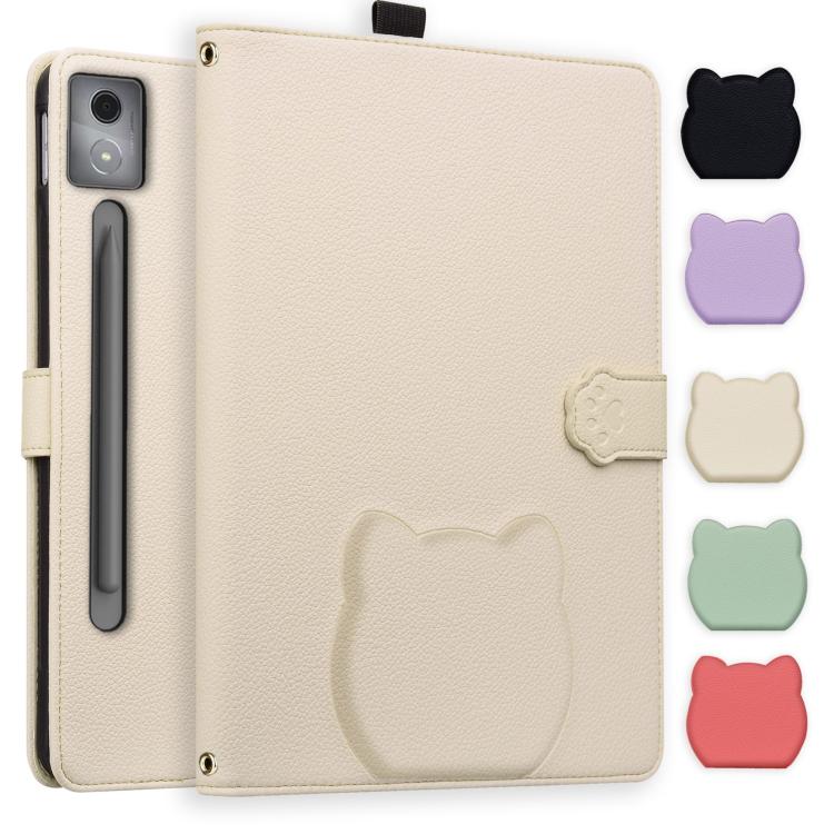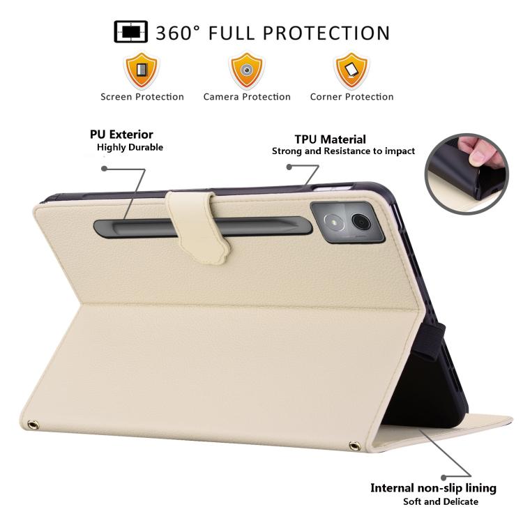 For Lenovo Xiaoxin Pad Pro 12.7 2025 Cat Skin-feel Litchi Leather Tablet Case(Apricot White)
