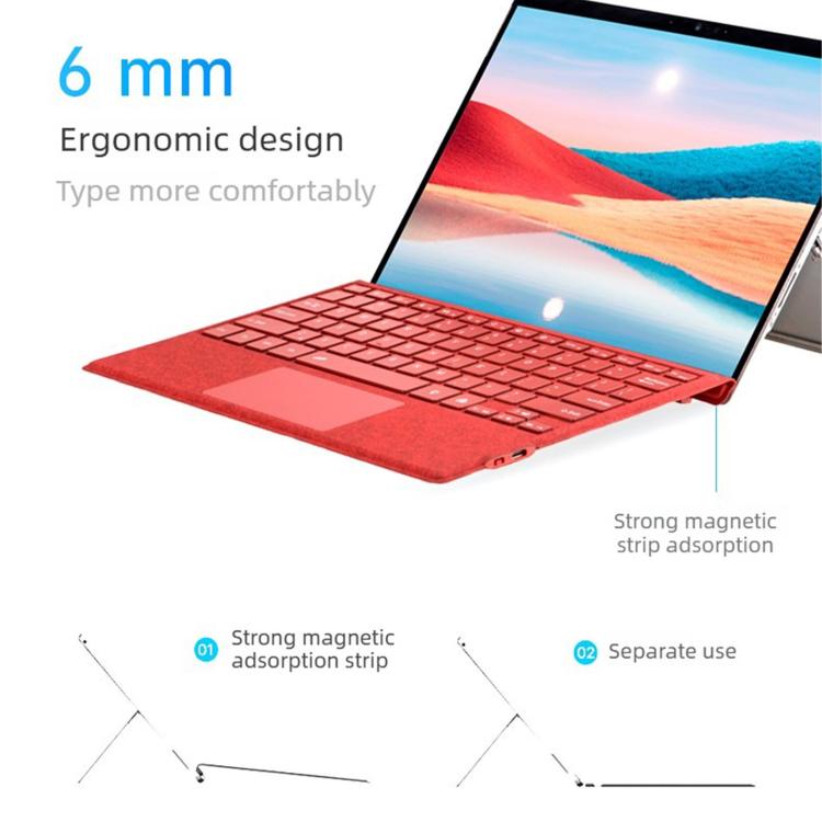 For MicroSoft Surface Pro 3 / 4 / 5 / 6 / 7 Velvet-Finish Ultra-Slim Wireless Bluetooth Magnetic Attachment Keyboard with Multicoloured Backlighting(Burgundy)