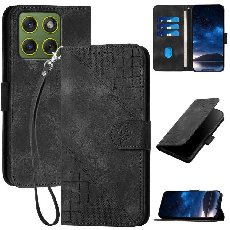 For Motorola Edge 70 5G / Moto X70 Air 5G Grid Butterfly Embossed Pattern Leather Phone Case with Lanyard(Black)