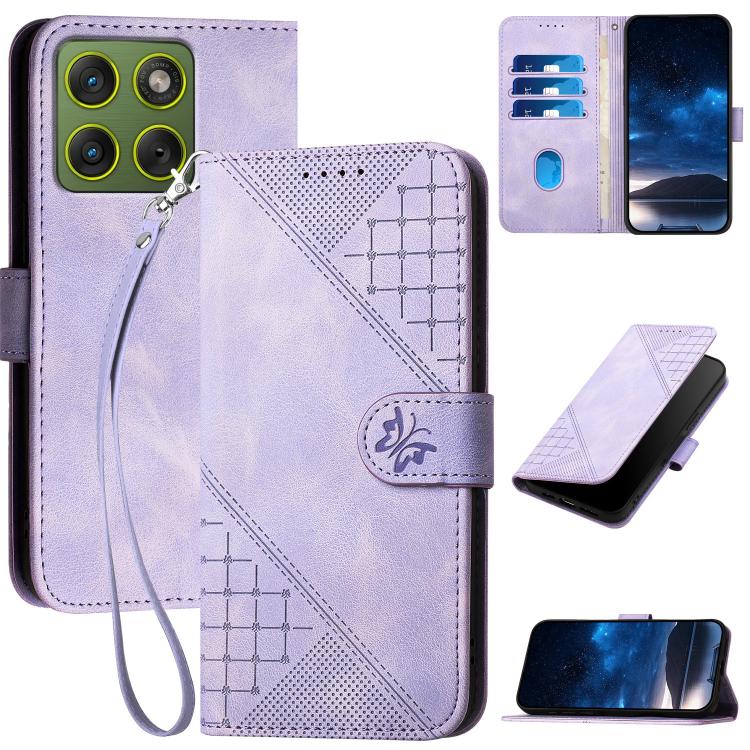 For Motorola Edge 70 5G / Moto X70 Air 5G Grid Butterfly Embossed Pattern Leather Phone Case with Lanyard(Light Purple)