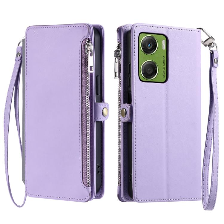For Motorola Moto G06 4G Leather Stitching Multi-card Slot Zipper Phone Case(Purple)