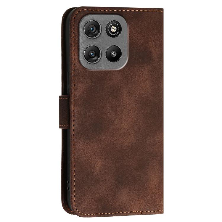 For Motorola Moto G67 Power 5G Grid Butterfly Embossed Pattern Leather Phone Case with Lanyard(Coffee)