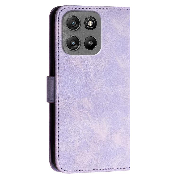 For Motorola Moto G67 Power 5G Grid Butterfly Embossed Pattern Leather Phone Case with Lanyard(Light Purple)