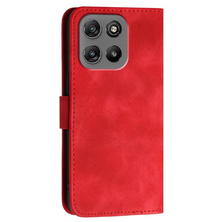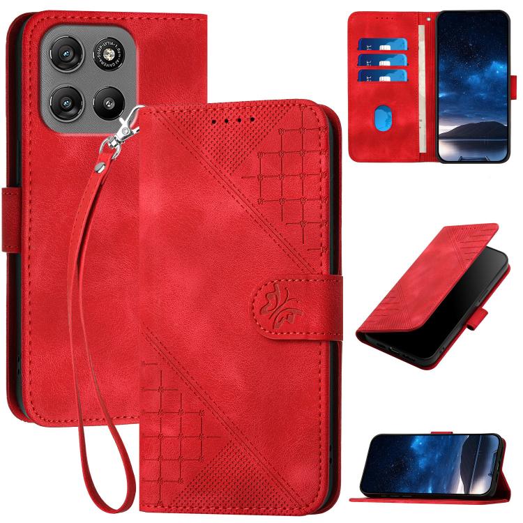 For Motorola Moto G67 Power 5G Grid Butterfly Embossed Pattern Leather Phone Case with Lanyard(Red)