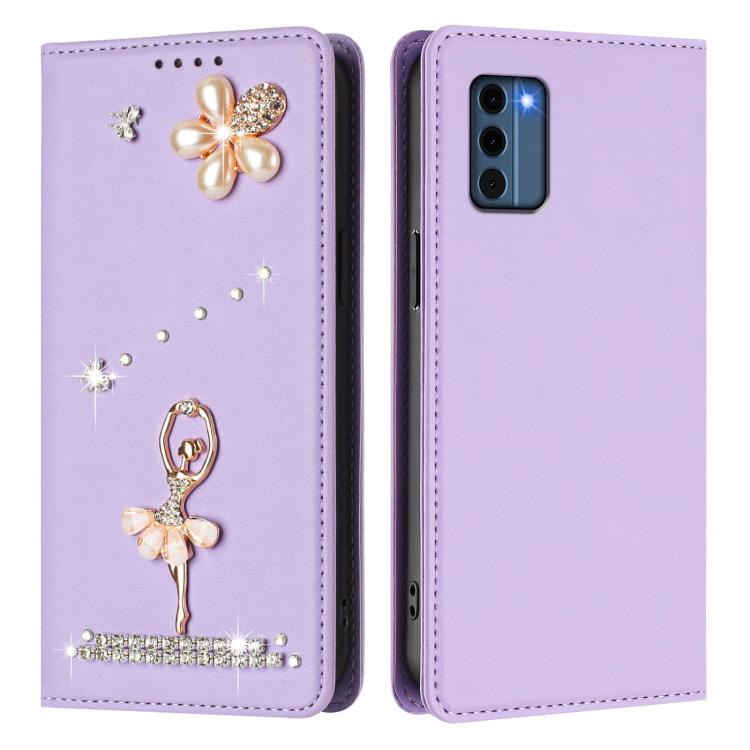 For Nokia C300 Ballet Girl Diamond Studded RFID Vegan Leather Phone Case(Light Purple)