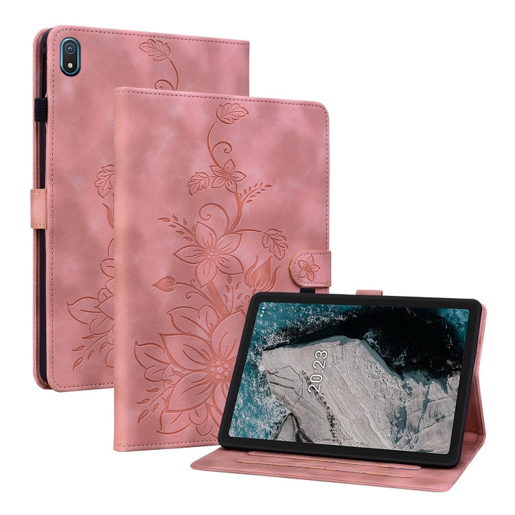 For Nokia T20 10.4 2021 Lily Embossed Leather Tablet Case(Pink)