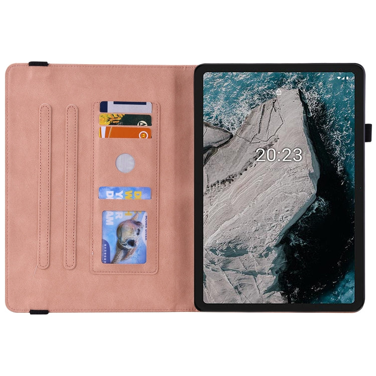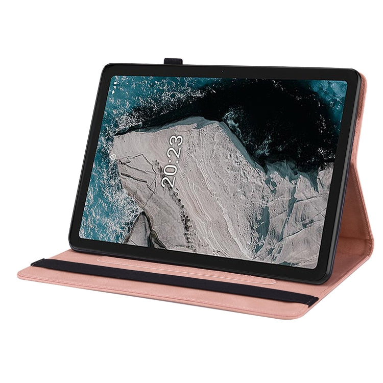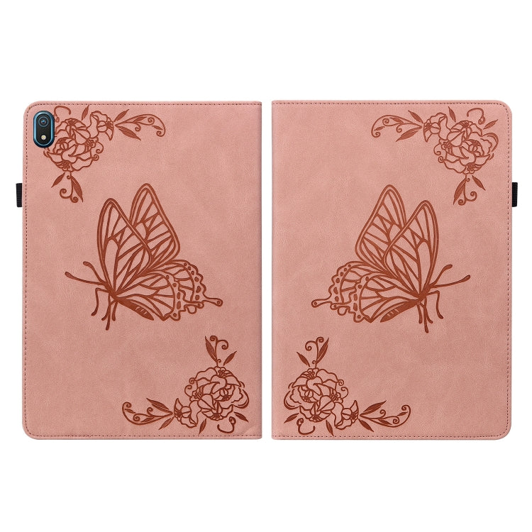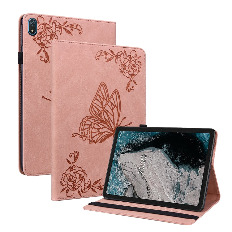 For Nokia T20 Butterfly Flower Embossed Leather Tablet Case(Rose Gold)