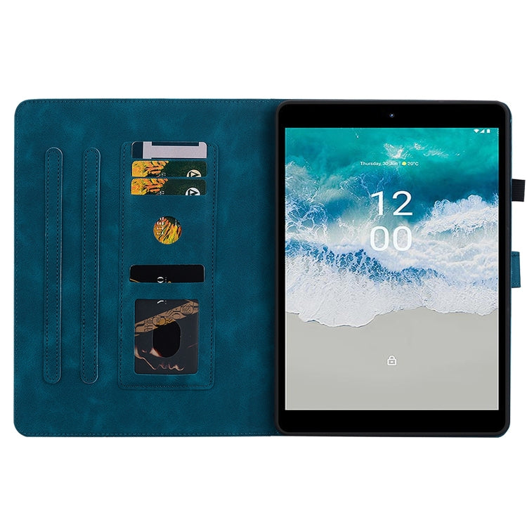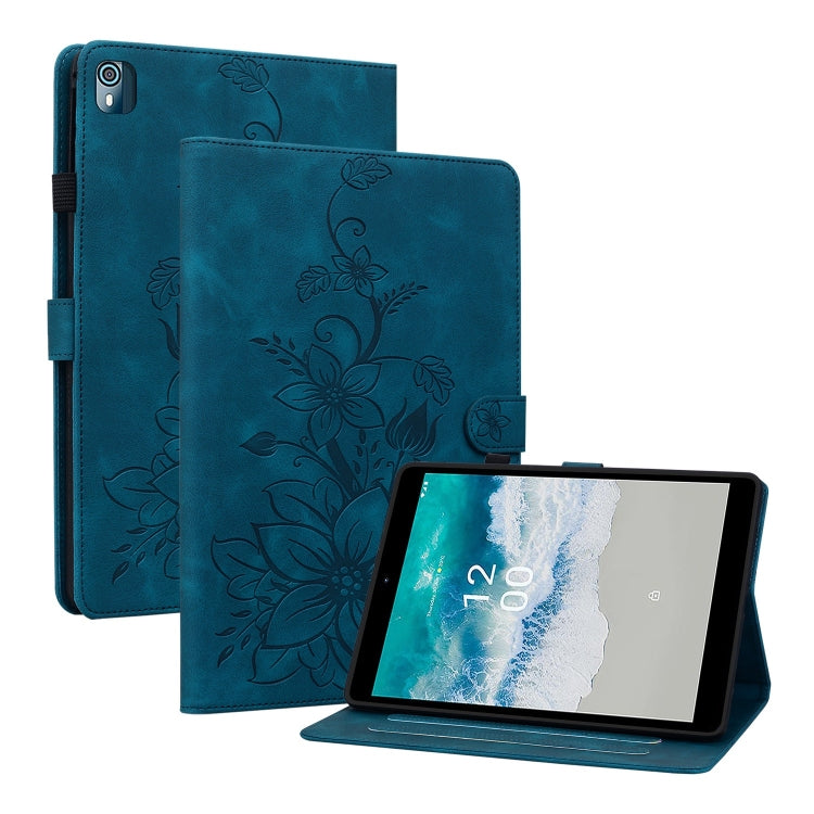 For Nokia T21 Lily Embossed Leather Tablet Case(Dark Blue)