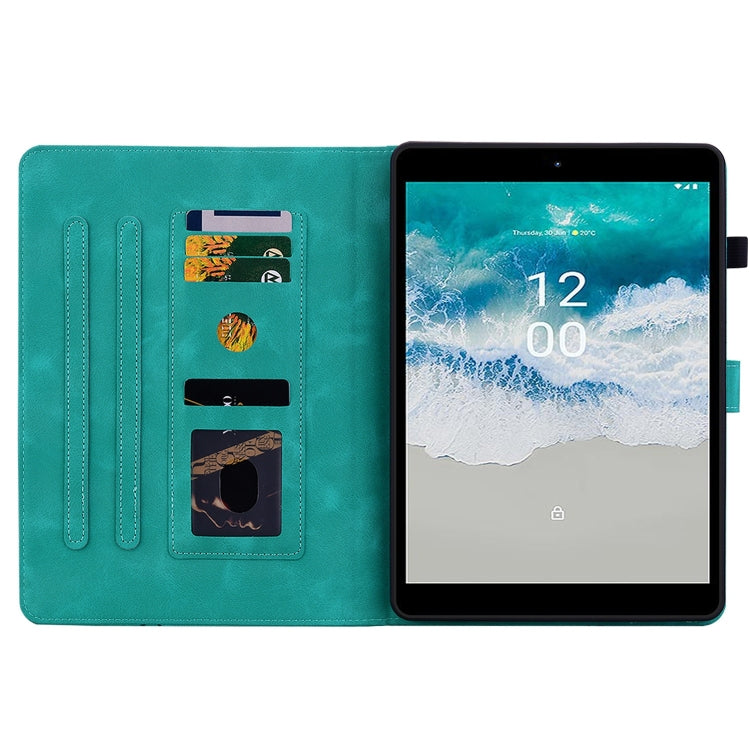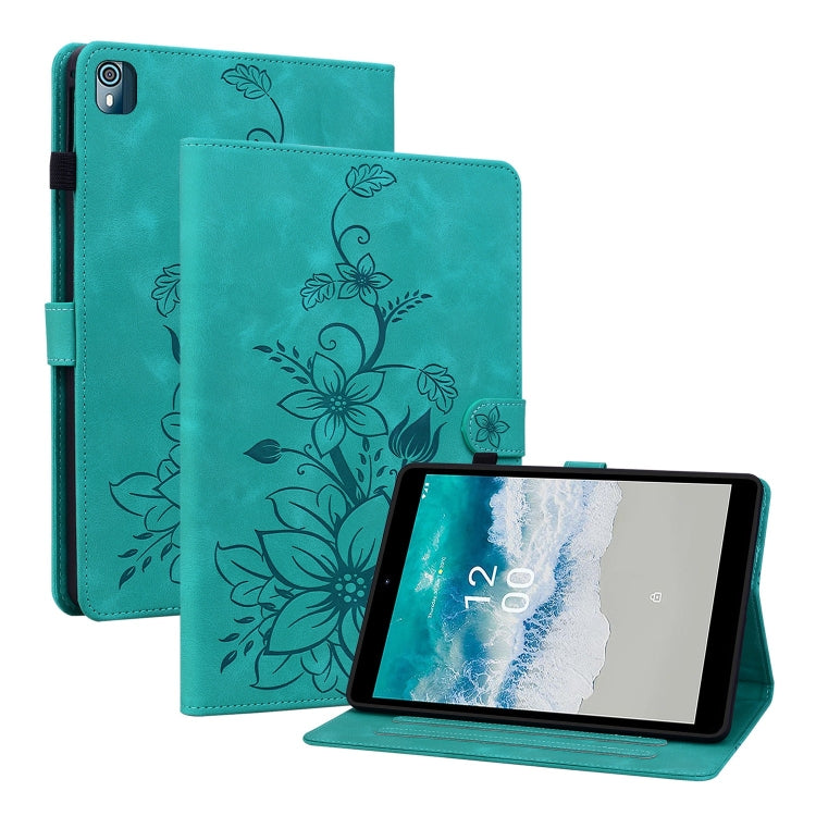For Nokia T21 Lily Embossed Leather Tablet Case(Green)