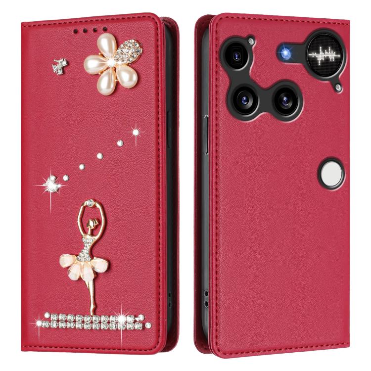 For Nothing Phone 3 Ballet Girl Diamond Studded RFID Vegan Leather Phone Case(Wine Red)