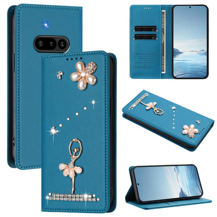 For Nothing Phone 3a Ballet Girl Diamond Studded RFID Vegan Leather Phone Case(Lake Blue)