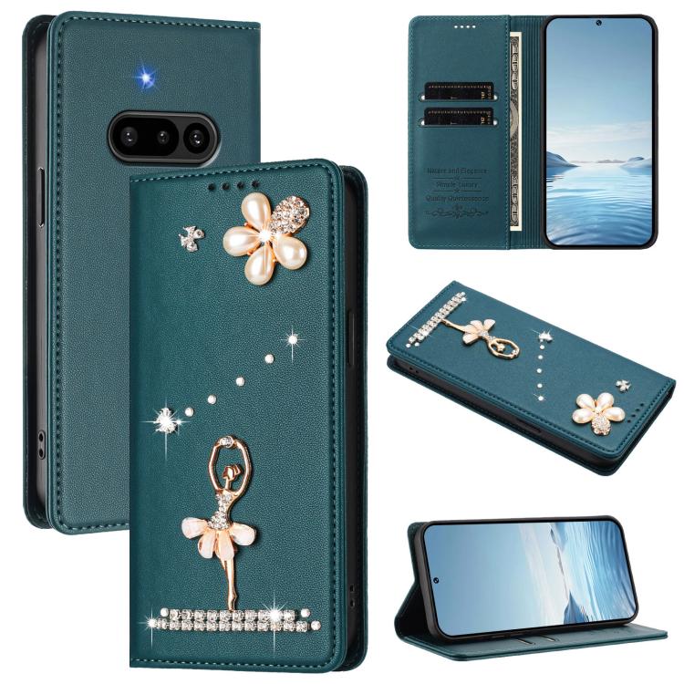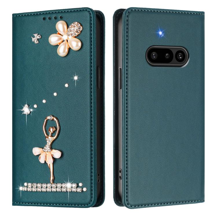 For Nothing Phone 3a Ballet Girl Diamond Studded RFID Vegan Leather Phone Case(Peacock Green)