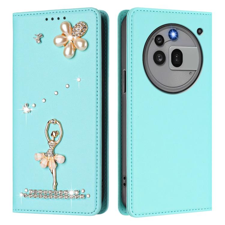 For Nothing Phone 3a Pro Ballet Girl Diamond Studded RFID Vegan Leather Phone Case(Mint Green)