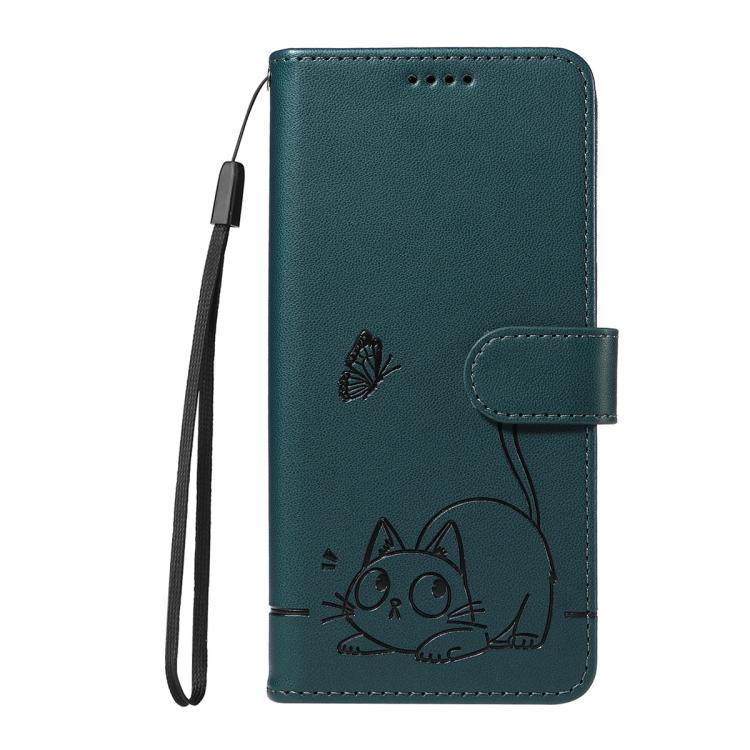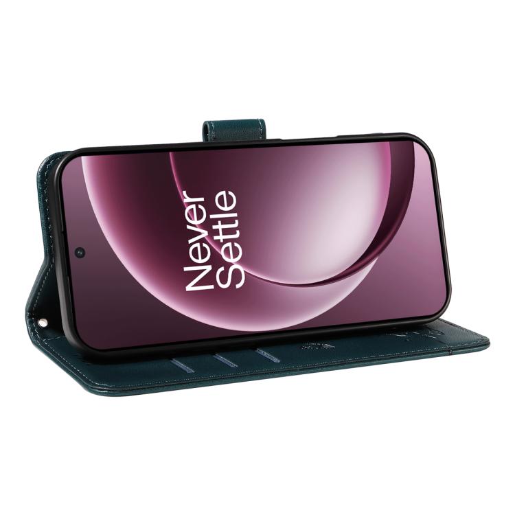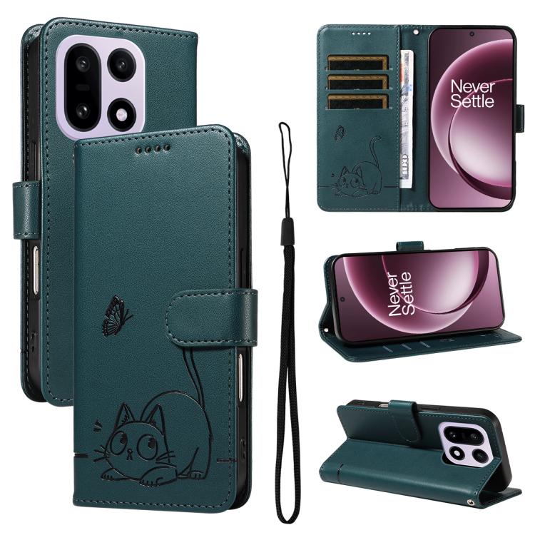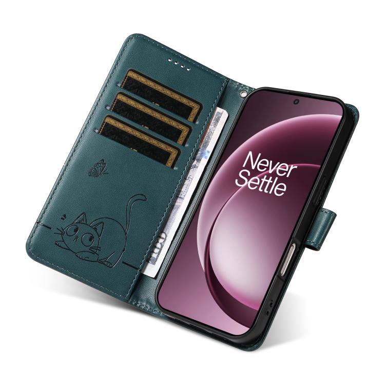 For OnePlus 15 Adorable Cat Embossed Pattern Flip Leather Phone Case(Dark Green)