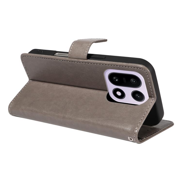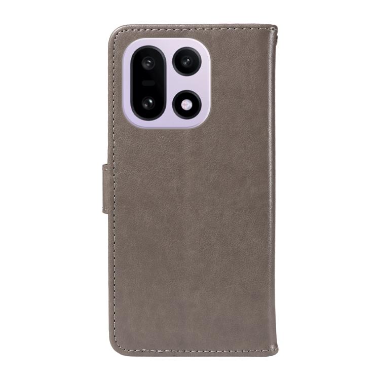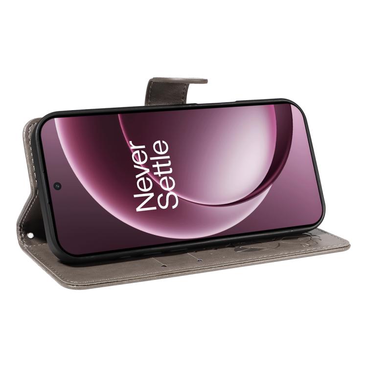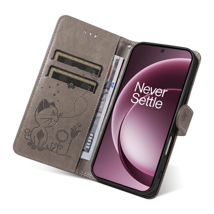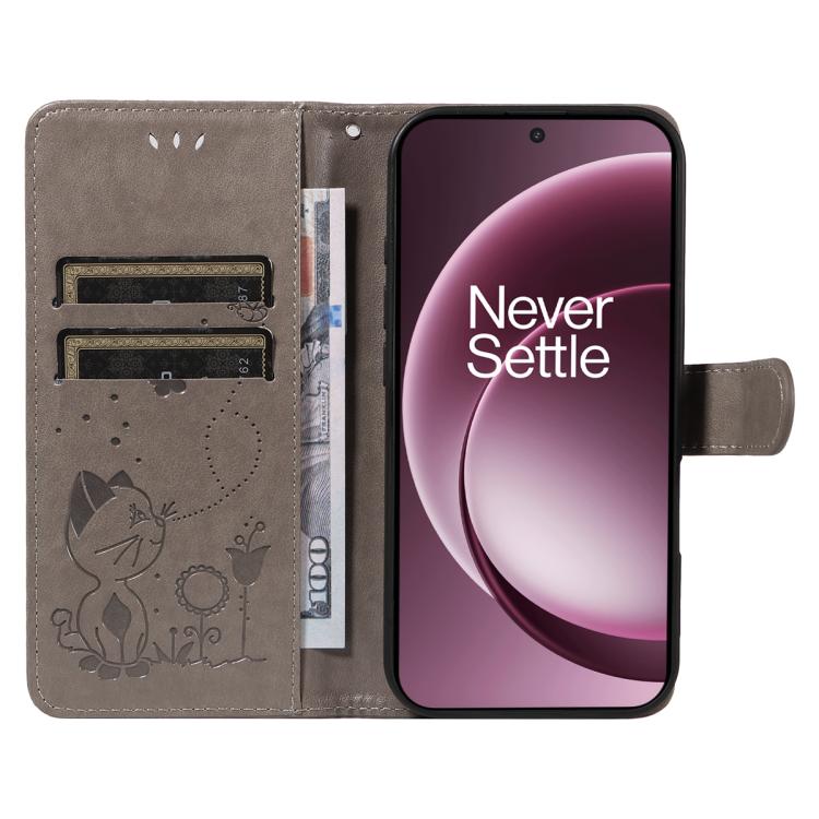 For OnePlus 15 Cat and Bee Embossed Flip Leather Phone Case(Grey)