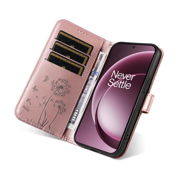 For OnePlus 15 Dandelion Embossed Pattern Flip Leather Phone Case(Rose Gold)
