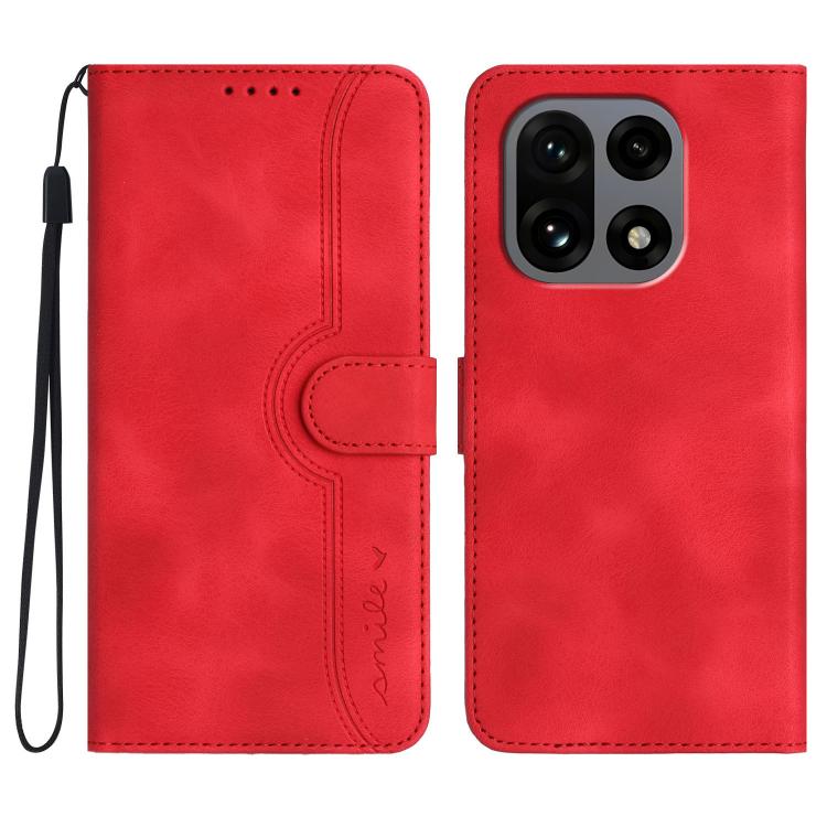 For OnePlus 15 Heart Pattern Skin Feel Leather Phone Case(Red)
