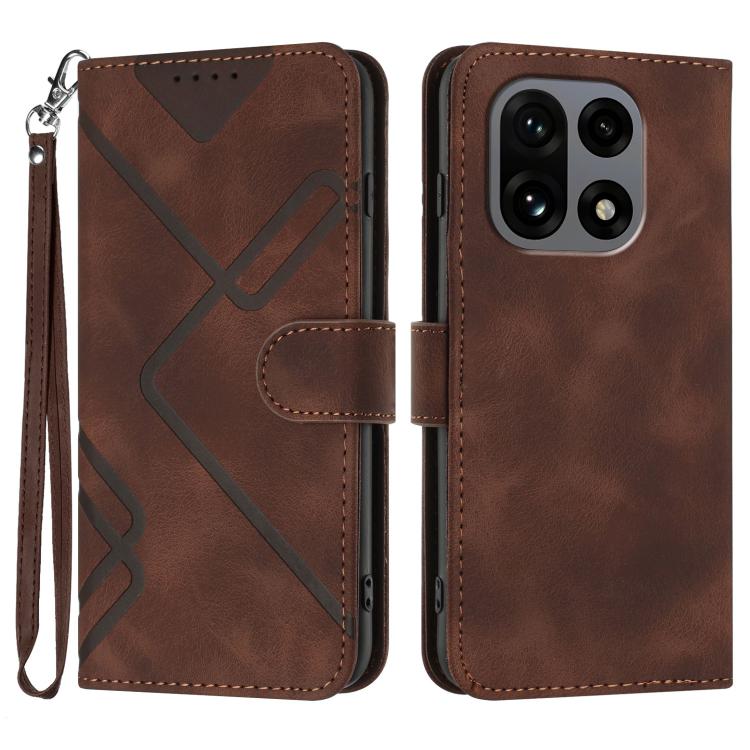 For OnePlus 15 Line Pattern Skin Feel Leather Phone Case(Coffee)