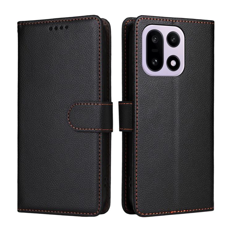 For OnePlus 15 Litchi Texture RFID Blocking 3-Card Wallet Leather Phone Case(Black)
