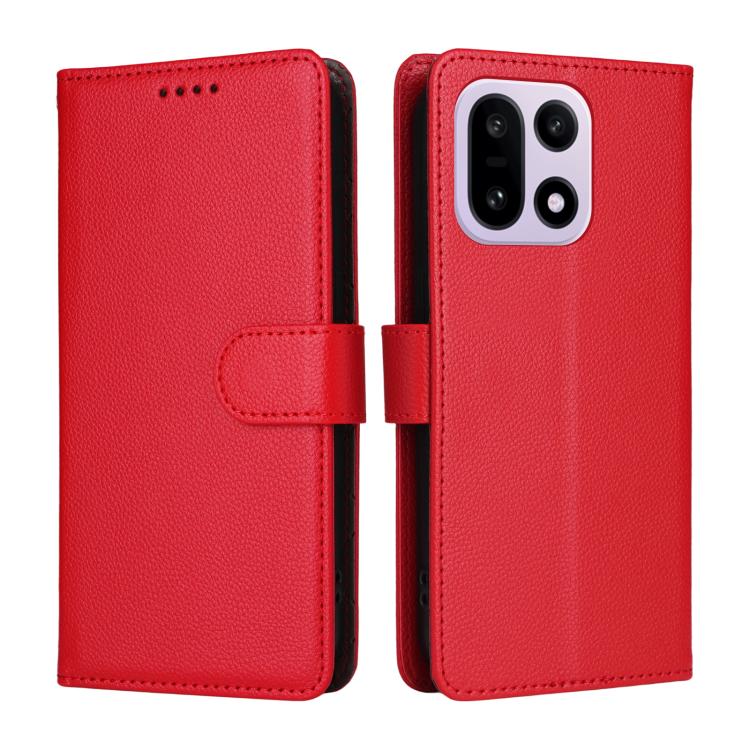 For OnePlus 15 Litchi Texture RFID Blocking 3-Card Wallet Leather Phone Case(Red)