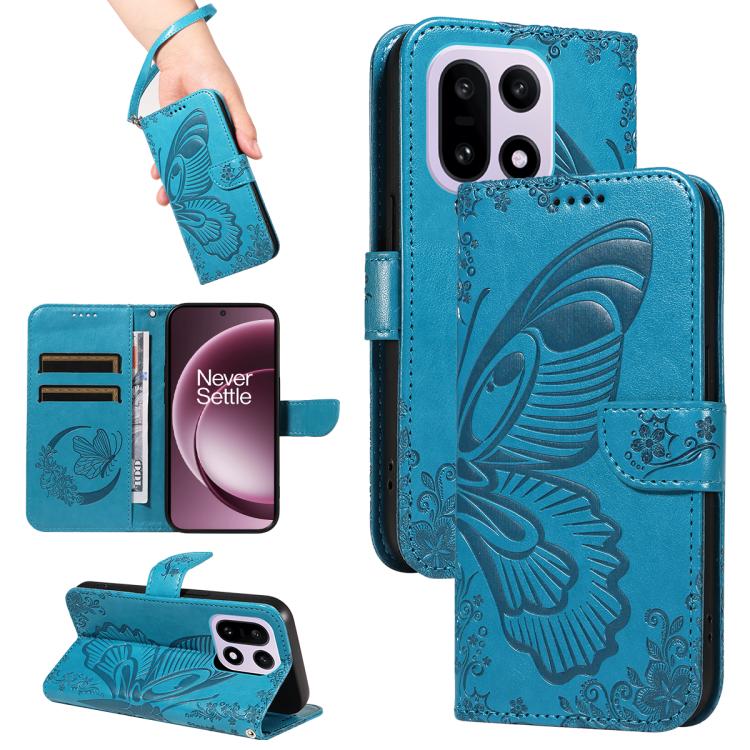 For OnePlus 15 Swallowtail Butterfly Embossed Leather Phone Case(Blue)