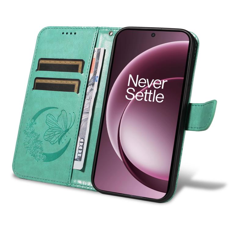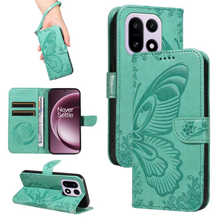 For OnePlus 15 Swallowtail Butterfly Embossed Leather Phone Case(Green)