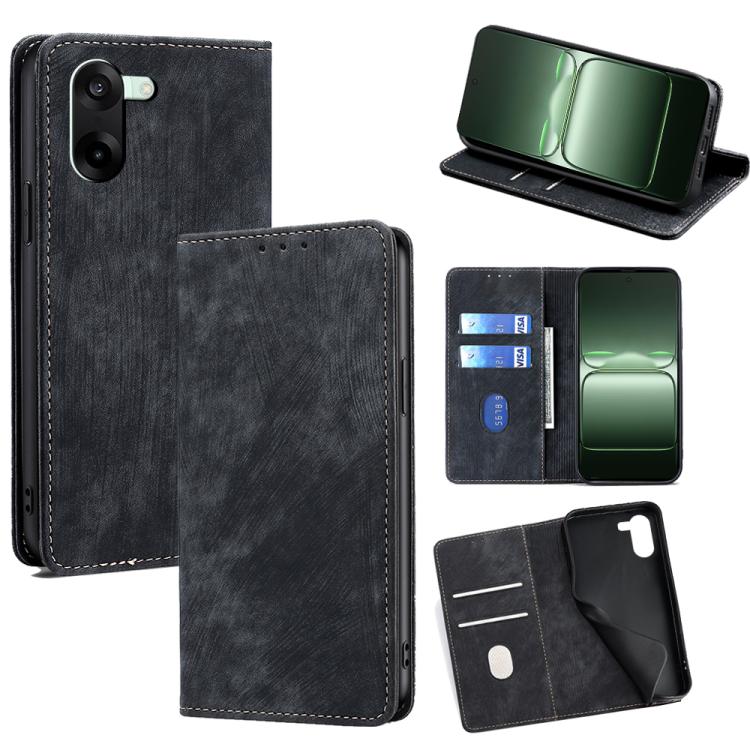 For OnePlus Ace 5 Racing / Nord CE5 RFID Anti-theft Brush Magnetic Leather Phone Case(Black)