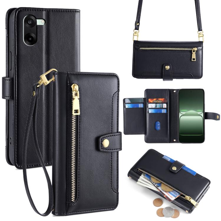 For OnePlus Ace 5 Racing / Nord CE5 Sheep Texture Cross-body Zipper Wallet Leather Phone Case(Black)