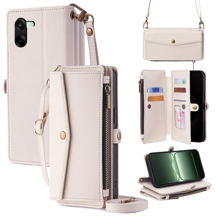 For OnePlus Ace 5 Racing / Nord CE5 Zipper Wallet Side Buckle Crossbody Lanyard Leather Phone Case(White)