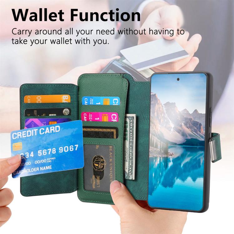 For OnePlus Ace 6 / 6T CaseNeo MagSafe RFID Anti-theft Zipper Wallet Retro Leather Phone Case(Green)