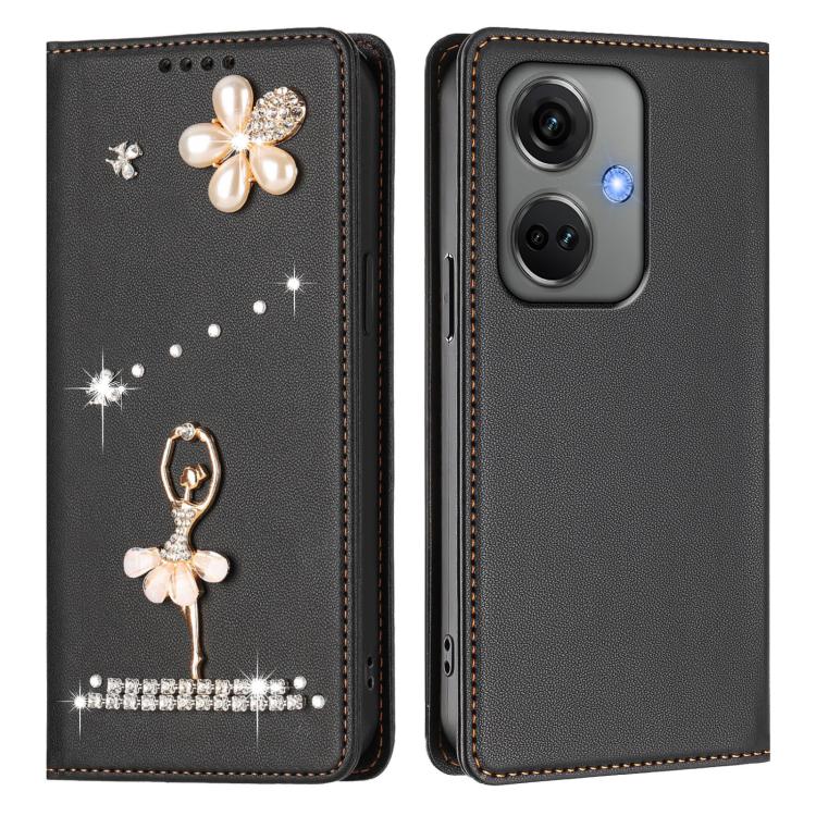 For OnePlus Nord CE3 5G India Ballet Girl Diamond Studded RFID Vegan Leather Phone Case(Black)