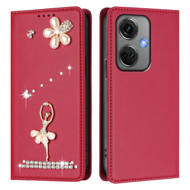 For OnePlus Nord CE3 5G India Ballet Girl Diamond Studded RFID Vegan Leather Phone Case(Wine Red)