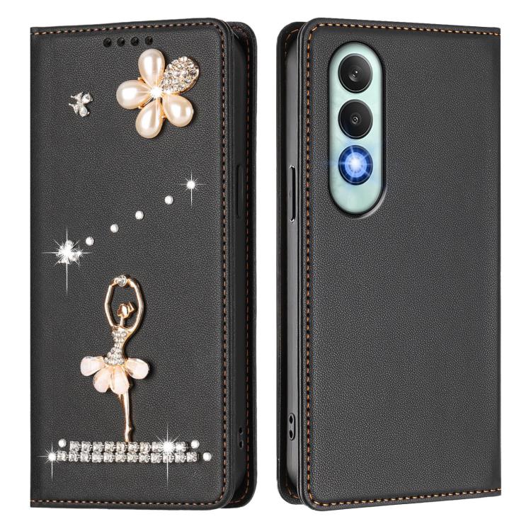 For OnePlus Nord CE4 5G Ballet Girl Diamond Studded RFID Vegan Leather Phone Case(Black)