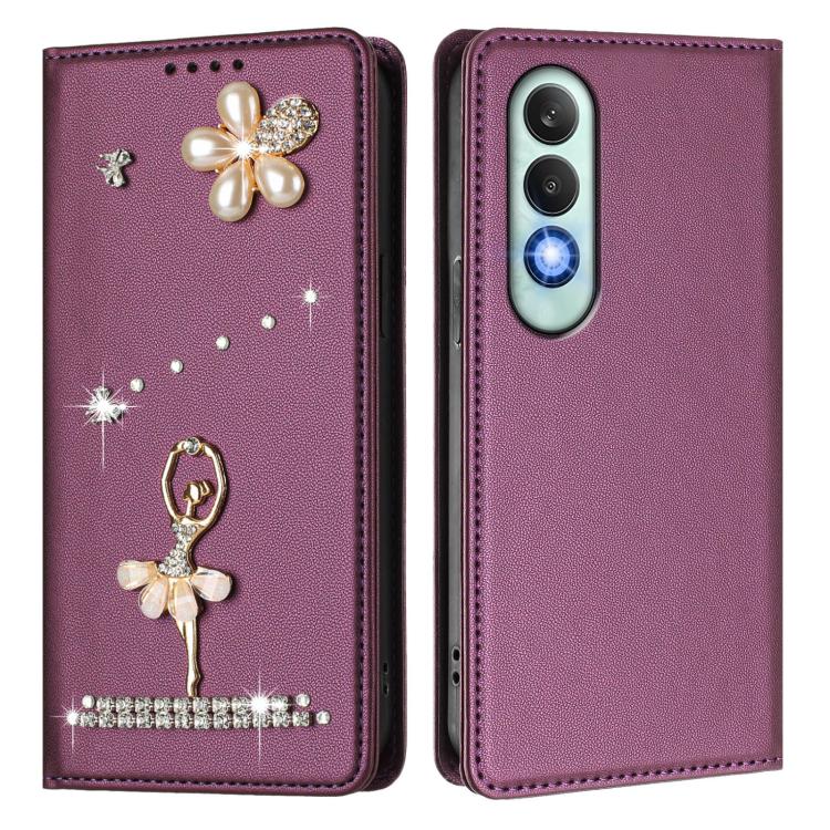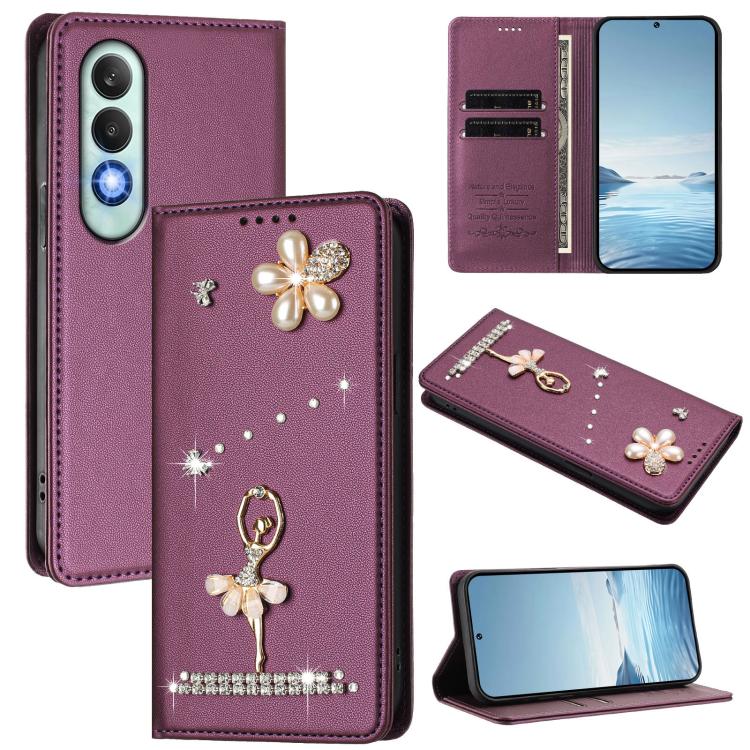 For OnePlus Nord CE4 5G Ballet Girl Diamond Studded RFID Vegan Leather Phone Case(Violet)