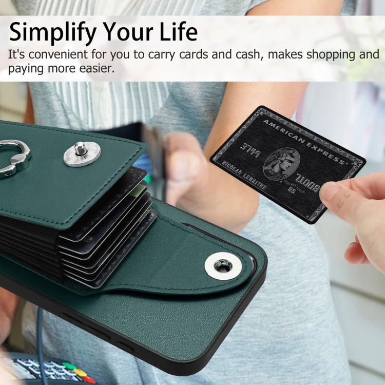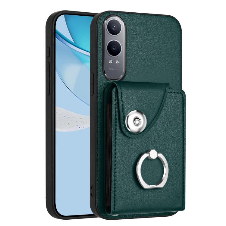 For OnePlus Nord CE4 Lite 5G / OPPO K12x Organ Card Bag Ring Holder PU Phone Case(Green)