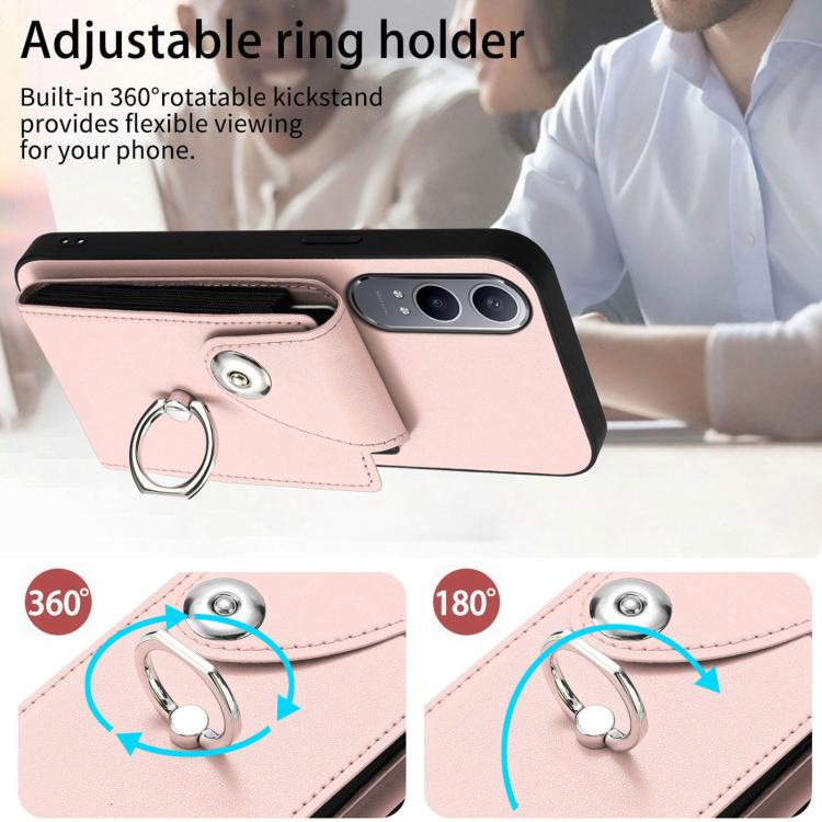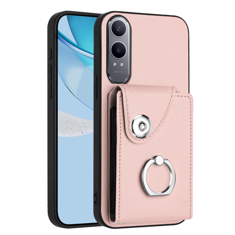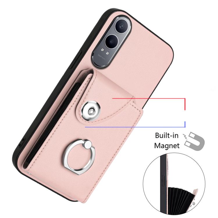 For OnePlus Nord CE4 Lite 5G / OPPO K12x Organ Card Bag Ring Holder PU Phone Case(Pink)